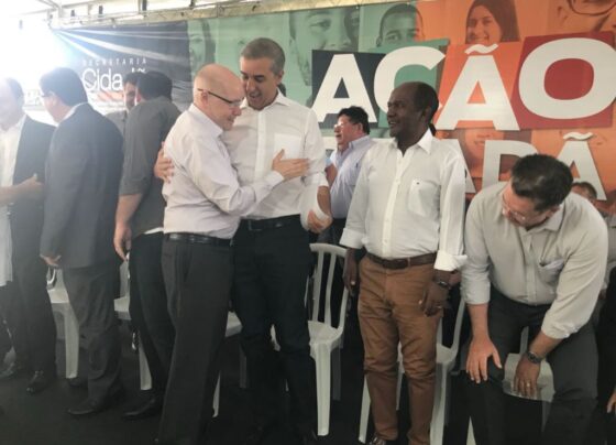 Demóstenes ao lado do Governador José Eliton e autoridades. O governador José Eliton levou a Aparecida de Goiânia, hoje de…