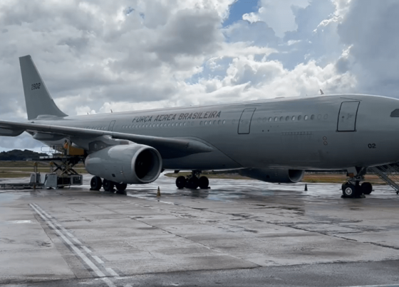 A aeronave KC-30, da Força Aérea Brasileira (FAB), pousou na noite deste sábado (25), no Aeroporto Internacional de Confins, em Belo…