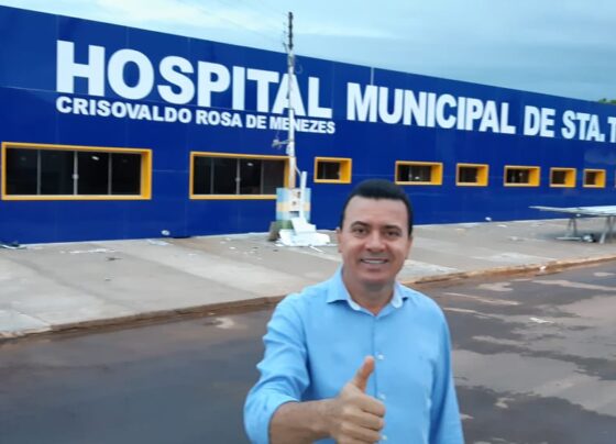 Prefeito Marcos Cabral em frente ao hospital municipal. O município de Santa Terezinha de Goiás é hoje um centro de…