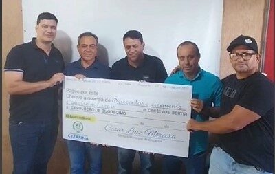 Presidente da Câmara formaliza devolução de 650Mil de recursos para a Prefeitura de Cezarina.