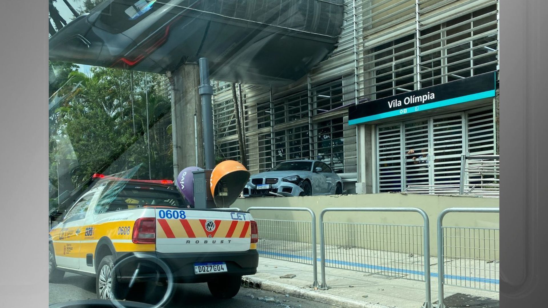 A CNN recebeu imagens que mostram o veículo em cima de uma das muretas de proteção da estação. Pelas fotos é possível ver algumas grades de proteção, localizadas na calçada, danificas.