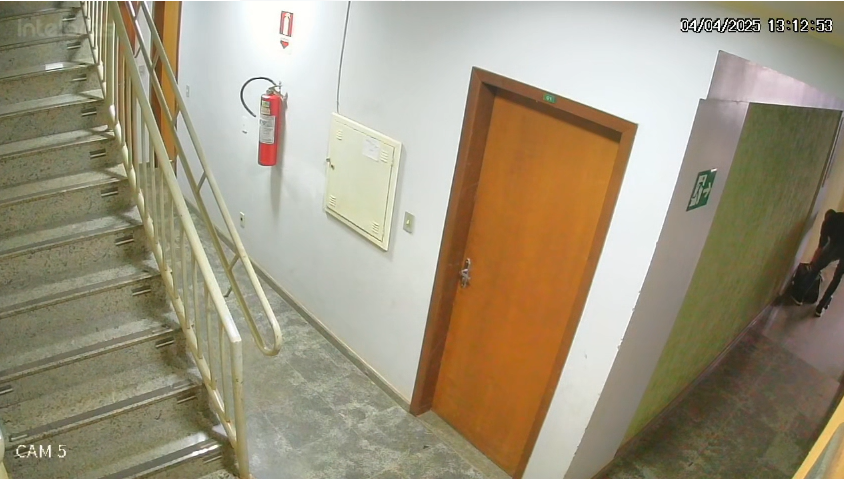 Às 12h40, Augusto, que foi o responsável por limpar e descartar as partes do corpo, é visto saindo do apartamento, sozinho e com outra roupa. Ele sai carregando uma caixa de plástico e demonstra alguma dificuldade para carregá-la. E, então, é visto saindo do prédio.