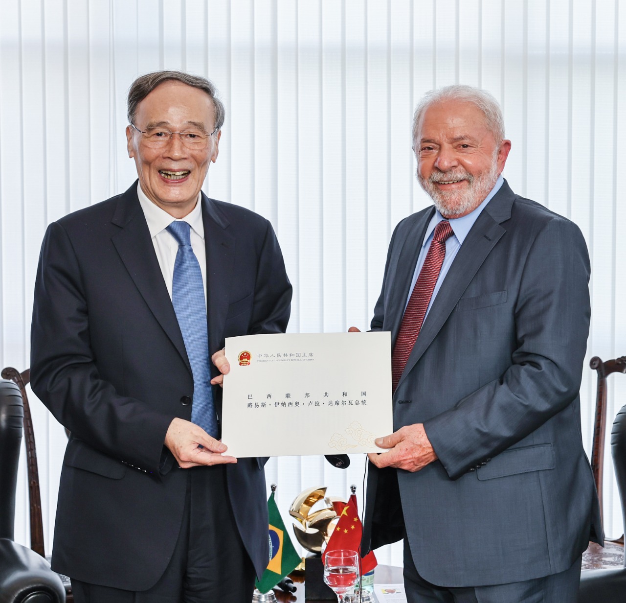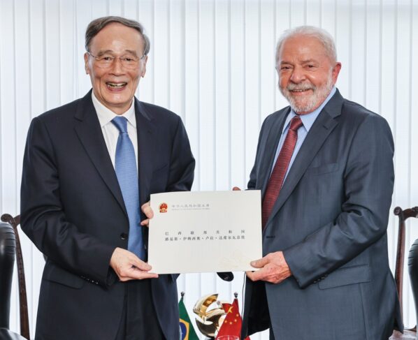O presidente Lula recebeu o vice-presidente da China, Wang Qishan, que entregou uma carta do presidente Xi Jinping com os cumprimentos e o interesse em ampliar a cooperação. O país é o maior parceiro comercial do Brasil.