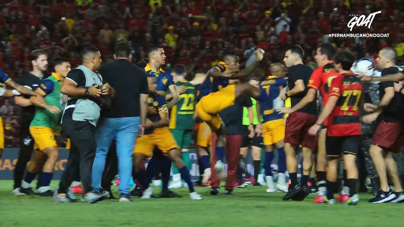 Depois do apito final, os jogadores do Retrô se reuniram no meio-campo e partiram para a briga. Um deles, inclusive, acertou uma voadora em um membro da comissão técnica do Sport. A tensão só terminou quando a Polícia interviu.