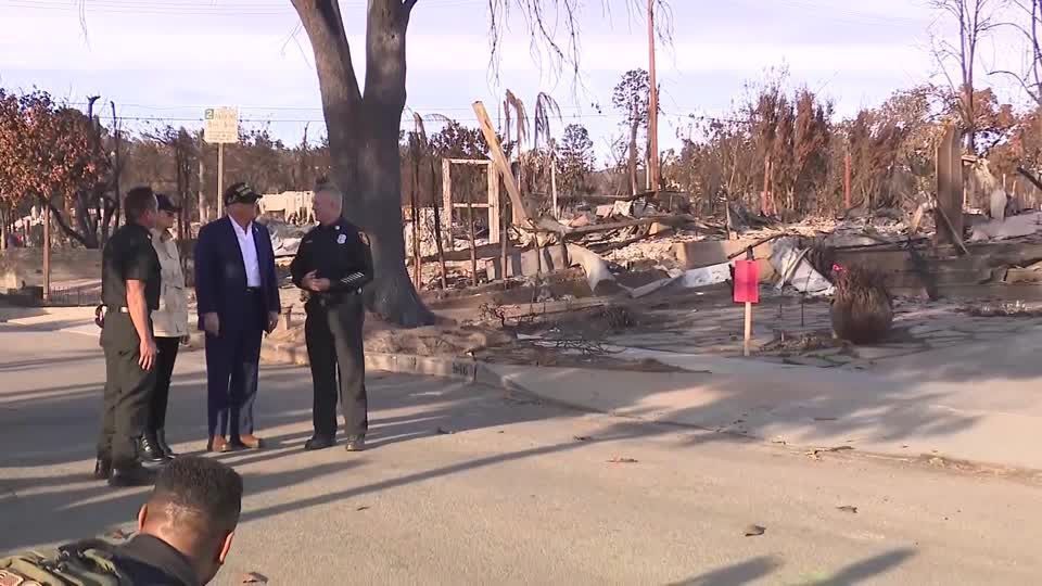 “Agradeço ao governador por ter vindo me encontrar”, disse Trump. “É como se você tivesse sido atingido por uma bomba”, acrescentou, referindo-se à devastação causada pelos incêndios florestais.
