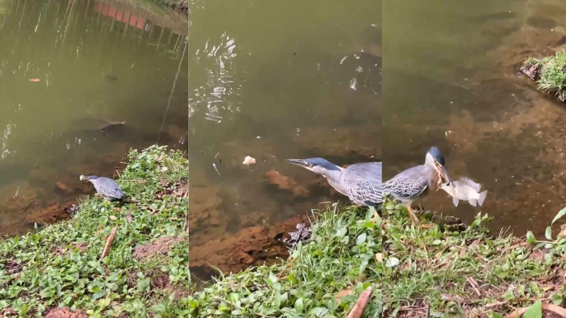 Uma cena curiosa tem viralizado nas redes sociais: um pássaro usou um pedaço de pão para atrair um peixe no Bosque dos Buritis, em Goiânia (GO). A cena foi flagrada pelo estudante Gustavo Henrique, de 20 anos.